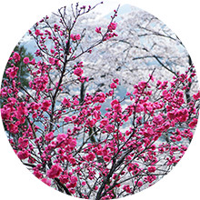春は、山々を包む満開の桜、初夏には蛍が飛び交い、11月中旬~12月中旬かけては、紅葉と天然記念物の「冬桜」を楽しめます。