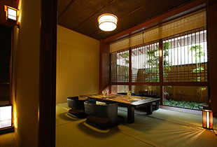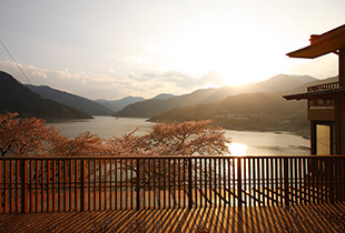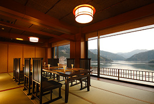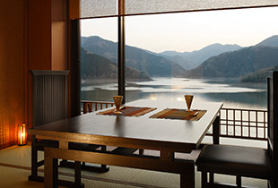 夕暮れの湖を眺めながらゆっくりとお食事を楽しんでいただける個室の食事処。