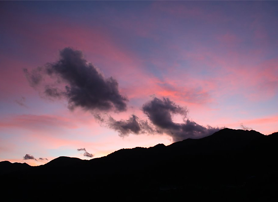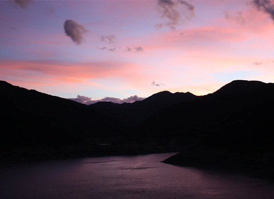 写真は、当庵から撮影した神流湖の夕焼けです。